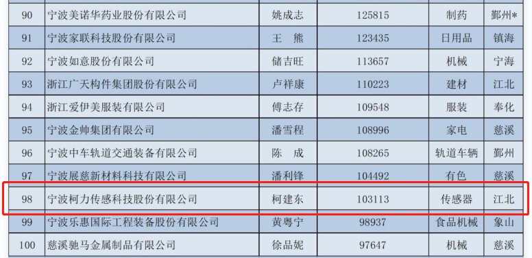 8月31日上午,2022寧波市企業(yè)百強(qiáng)榜單新鮮出爐,柯力傳感登榜“2022寧波市競爭力企業(yè)百強(qiáng)”第19名,“2022寧波市制造業(yè)企業(yè)百強(qiáng)”第98名。