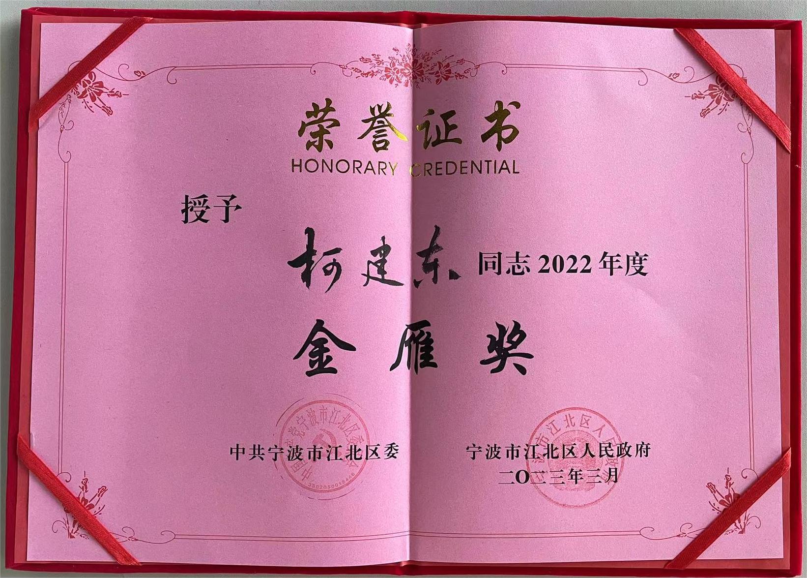 柯力傳感董事長兼總裁柯建東先生榮獲2022年度金雁獎