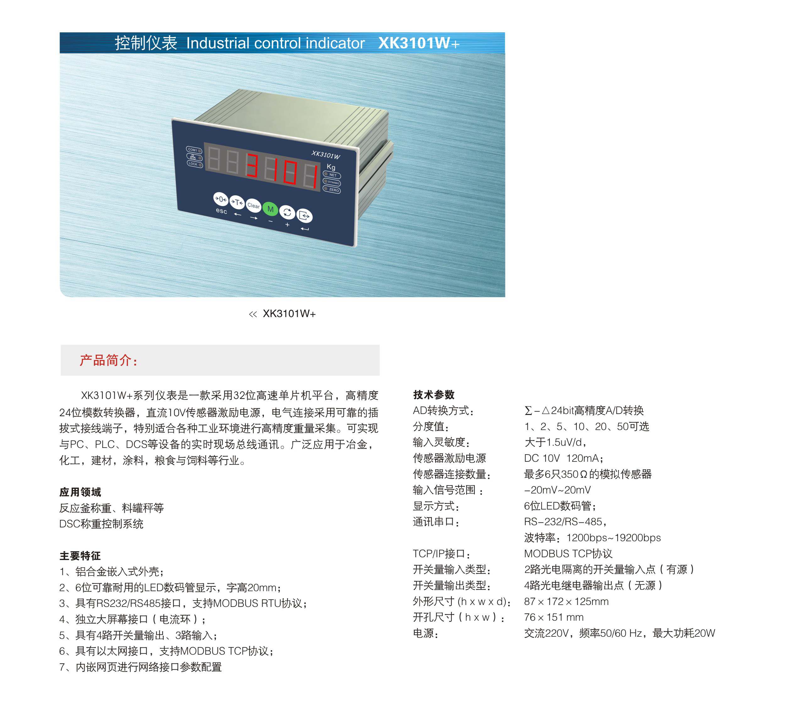 產(chǎn)品型號: 儀表 XK3101W+